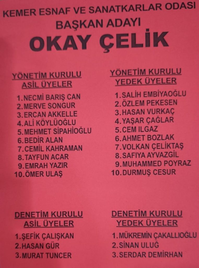 Bu sonuçla Okay Çelik, Kemer Esnaf ve Sanatkârlar Odası’nın yeni başkanı oldu.