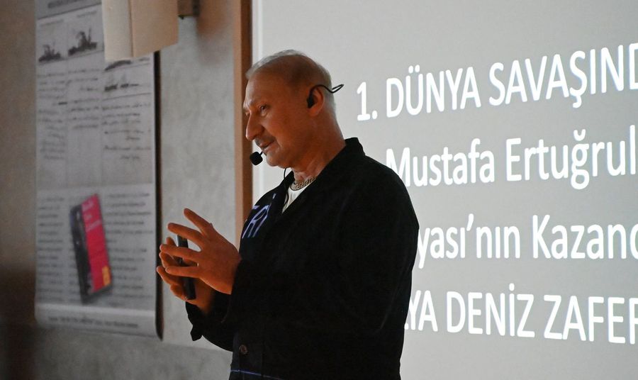 Mustafa Aydemir söyleşisinde, Birinci Dünya Savaşı sırasında Kaş ve Kemer açıklarında İngiliz ve Fransız uçak gemilerini karadan topçu atışıyla batıran Yüzbaşı Mustafa Ertuğrul’un stratejik dehasına vurgu yaptı. Antalya’nın geçmişine ışık tutan Aydemir, “Antalya’nın unutulmuş olsa da son dönemde adı her yerde gururla anılmaya başlanan bu kahramanını ve o günlerin atmosferini gelecek nesillere aktarmak en büyük sorumluluğumuzdur,” dedi.