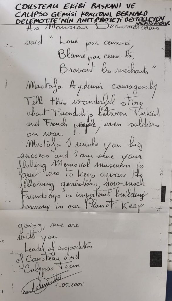 Mustafa Aydemir ayrıca Kemer’e o efsanevi Kaptan Cousteau’nun bütün ekibini de getirmiş ve onlarla birlikte Paris 2 Batığına dalış yaparak onlar üzerinden bu tarihin Fransa’da da tanınmasını sağlamıştır.